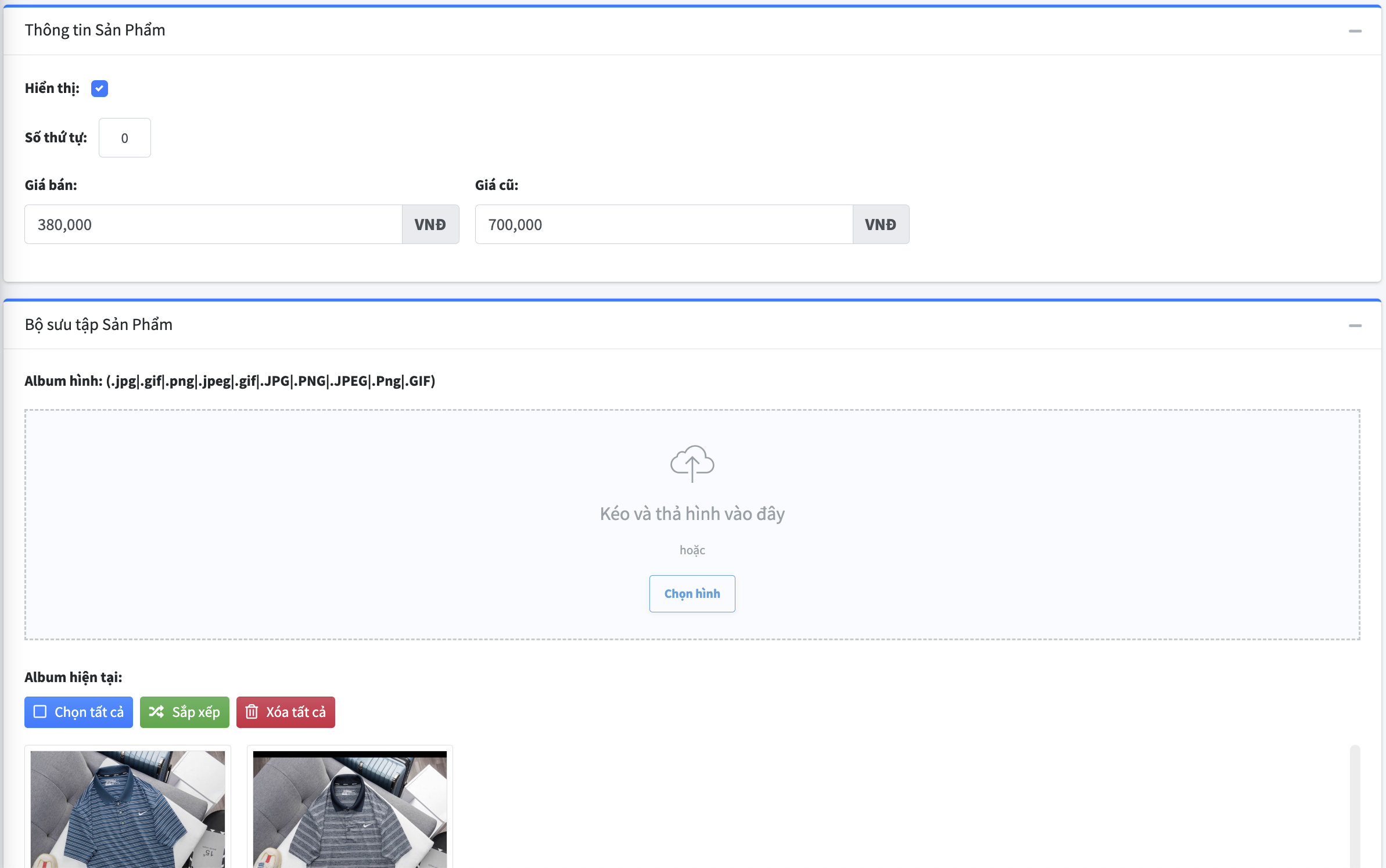- Bộ sưu tập là các hình ảnh đính kèm của sản phẩm đó hiển thị ở trang chi tiết sản phẩm.