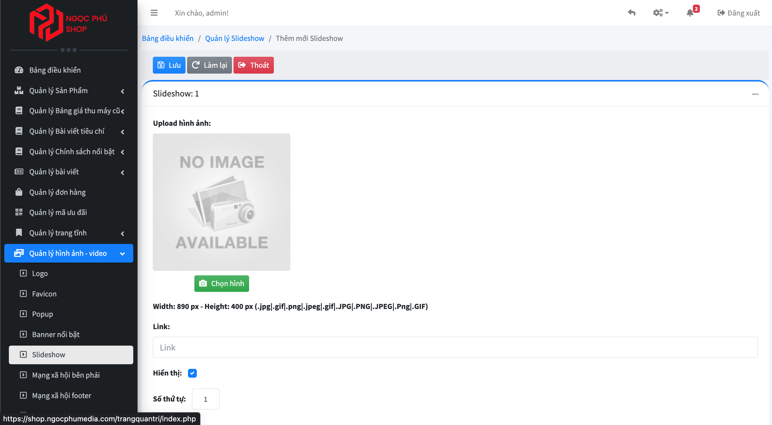 • Ngoài ra quý khách có thể chèn thêm Link của Slide để sau này khi click vào hình slide ngoài trang chủ sẽ dẫn link về đường dẫn mà khách hàng đã gắn cùng với slideshow.