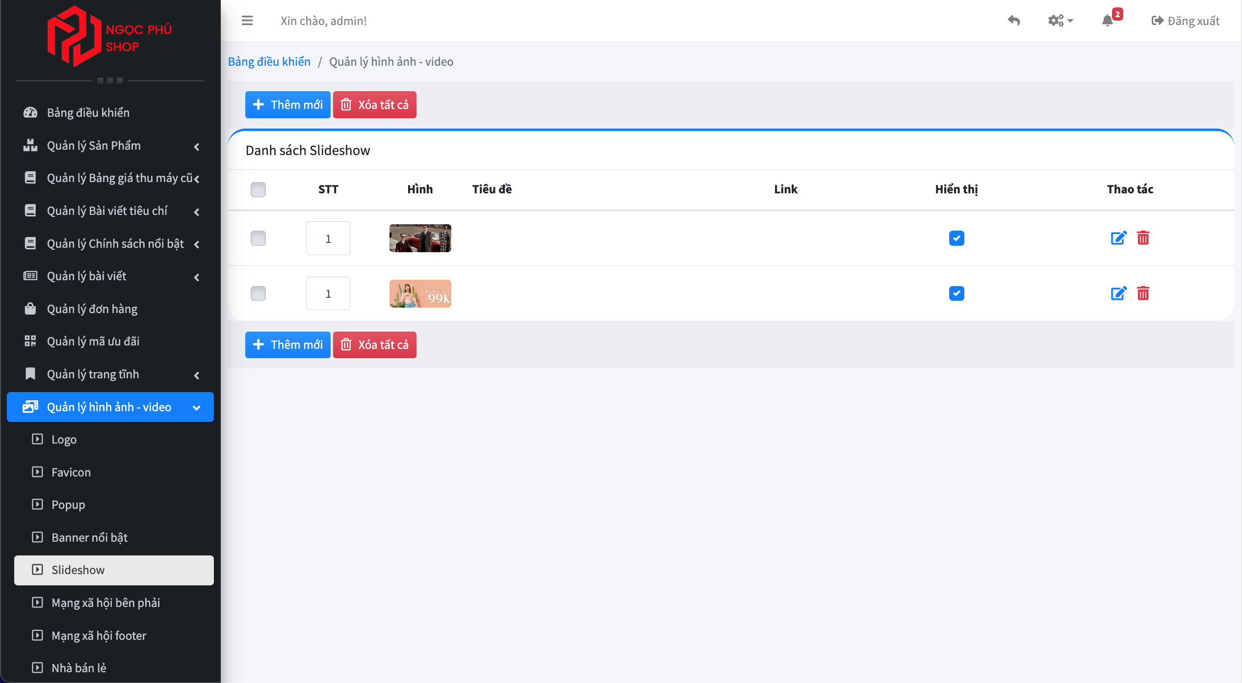 - Thêm Slideshow ( baner / hình ảnh ) ở đầu của website